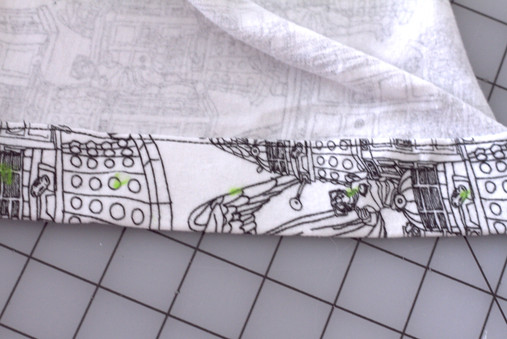 To test button placement pin your markings shut. Need more? Add a few more pins. Remove the pins holding the plackets together – leaving just your “buttons”. While looking in the mirror, move around, take a few deep breaths. Everything stay where it was supposed to be? Great! Let’s keep going! If not, adjust those “buttons” until you’re satisfied. If the original button placement worked for you, you’re good to go. If not you’ll need to adjust the spacing so everything is nice and uniform. Once you’ve done this once you’ll know your preference and can just go for it on all future versions.