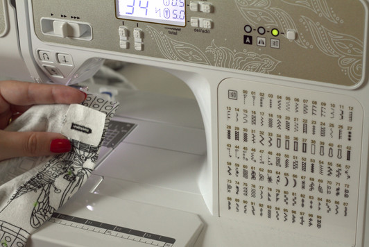 Remember how I said you’d want some stabilizer? Here is where we use it! Stabilizer goes between the buttonhole foot and your project, so line up your project first, and then add the stabilizer square on top of your project.